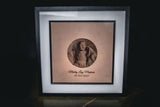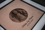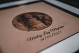 Laser engraved, beloved images / text on to a high quality vegetable tanned leather. Beautifully presented in a box frame.