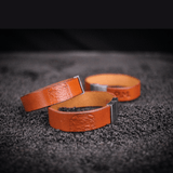 Perfect for both men and women, they're cut out of 2.5mm thick vegetable tanned leather and secured in to magnetic clasps.
