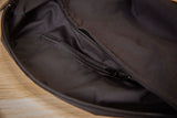 Place the bag liner inside the bag, aligning the brass eyelets on the leather tabs with the holes. Ensure the tabs are positioned facing downwards.