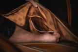Unlined bags show the natural backside of the leather, which is a smooth heat pressed suede finish.