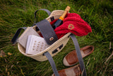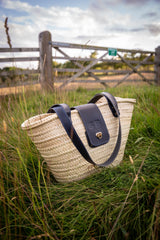 All of the leatherwork is hand crafted to order in house in our North Yorkshire workshop. The hand crafted leatherwork adds a touch of luxury to this already beautiful bag, designed to be comfortable to hold even when the bag is full. The attention to detail is evident in every aspect of this bag, from the intricate weaving of the wicker to the precision stitching of the leather handles.