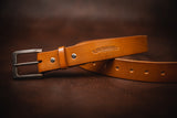 To ensure a comfortable and stylish fit, we recommend measuring an old belt from the folded leather around the buckle to the most used belt hole. From here, we can design and create the perfect belt for you, so you’ll be comfortable, stylish and ooze your unique personality.