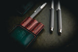 Each pen holder is a custom order, as we size the pockets to perfectly fit your pen set. Be it Mont Blanc or Caran d'Ache, we can make the perfect pen holders to suit your style and taste.